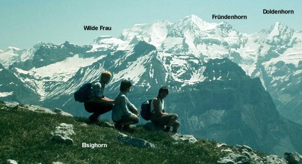 Zwei Fehler zeigt dieses Bild auf. Der eine, gegen das Licht fotografiert. Das ist natürlich nicht zu ändern. Wer will die Blümlisalp in die Sonne drehen? Der andere, das Doldenhorn ist natürlich das Fründenhorn und das Fründenhorn wohl das Öschinenhorn!