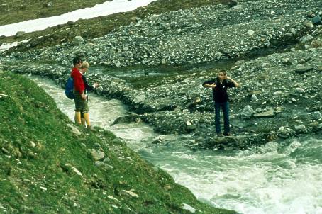Wo kann übergesetzt werden? Der Bach scheint klein, doch will man hinüber, ist das gar nicht so einfach.