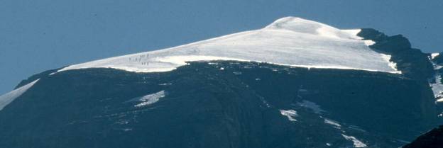 Auf den Gipfel (oder sollte es besser heißen, das Gipfeleisfeld) des Fründenhorns kann der Betrachter hier blicken und blickt er genauer hin, dann ....