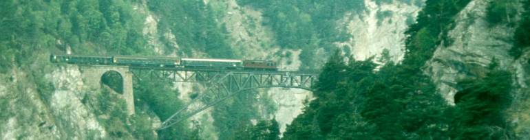 Da wird nun das Zügli auf der Brücke (Bietschtalviadukt) erwischt, doch dann ist der Fotograf noch zu weit weg, um es zu einem scharfen Bild zu bringen.