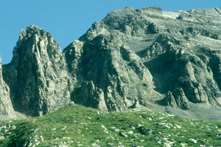 Dann steht man vor den Felswänden.Welches ist die dritte Rinne? Wo geht es hinauf?