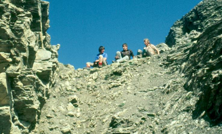 Eine üble Rinne. Alle drei sind froh, dass sie die erste Lohnerbergerklimmungsprüfung bestanden haben.