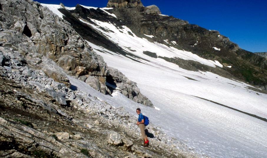 Im Hochsommer statt im Bikini am Thuner See auf den Berg durch Geröll und Schnee.