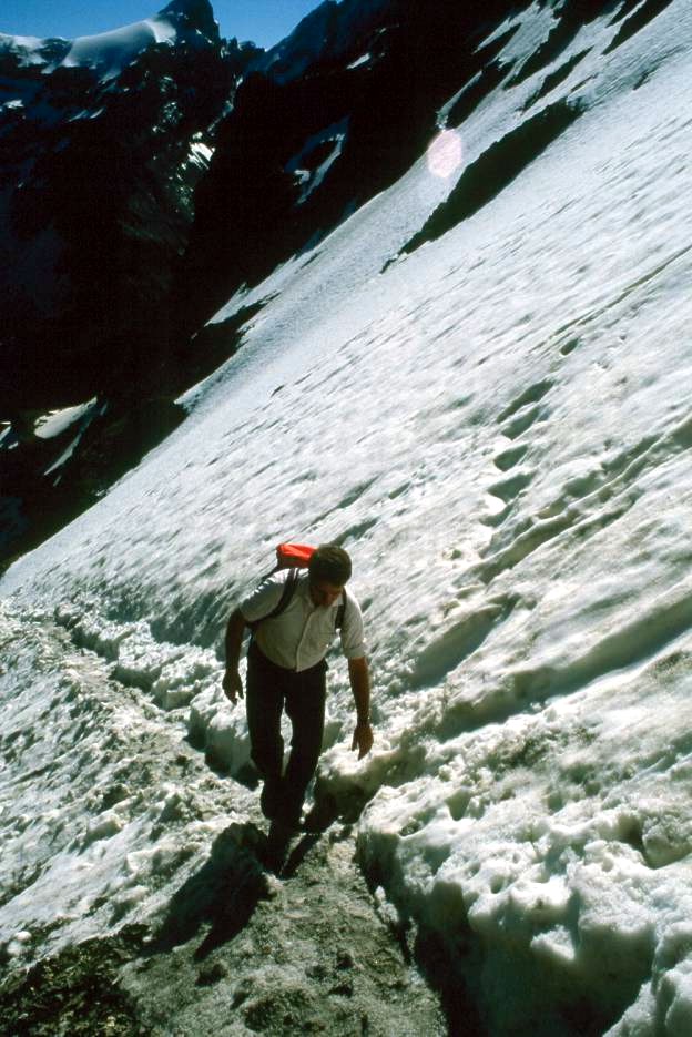 Ob das Queren eines solchen Schneefeldes auch schon gefährlich ist?
