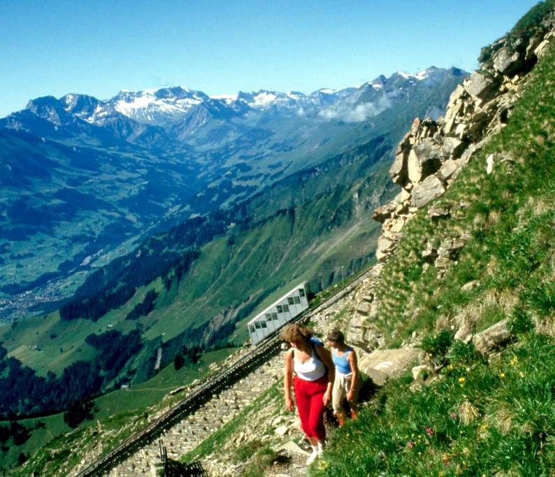 Hinauf, hinauf!Glücklicherweise brauchen die Wanderer nicht wie die Bahn direkt hinauf.