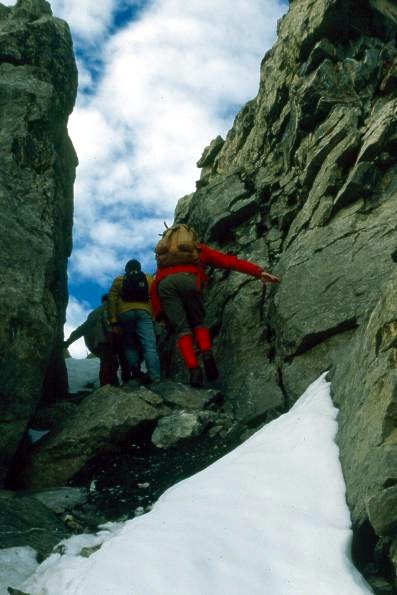 Vom Kindbettipass geht es hinauf zum Tierhörnli. 1985 ab Kindbettipass nicht markiert.