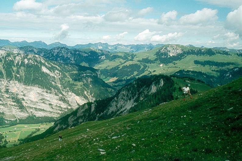 Hat der Wanderer den Wald hinter sich gelassen geht es steil durch die Wiesen (oder sind es Matten?) hinauf.