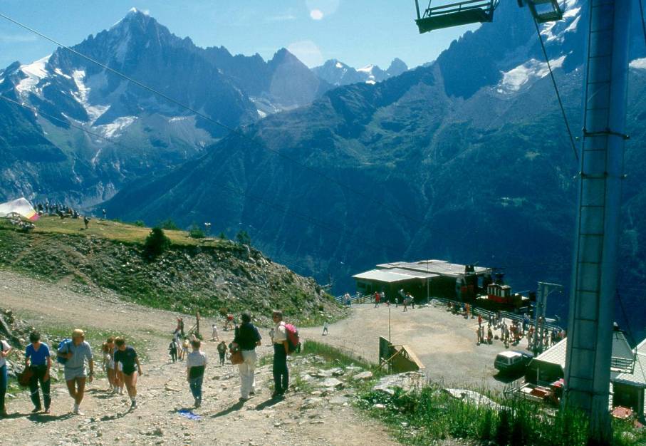 Nicht nur Zermatt, Saas Fee, Crans-Montana sind -ein wenig Unternehmungsgeist vorausgesetzt- mittels Lötschbergtunnel aus dem Berner Oberland zu erreichen, auch Chamonix kann an einem Wanderruhetag angefahren werden. Von Chamomix zum Mont Brevent (1986 nur fast, da die zweite Bahnsektion als Rost den Berg zierte) hinaufziehen lassen und die Berge gegenüber betrachten ist bereits ein bleibendes Erlebnis.