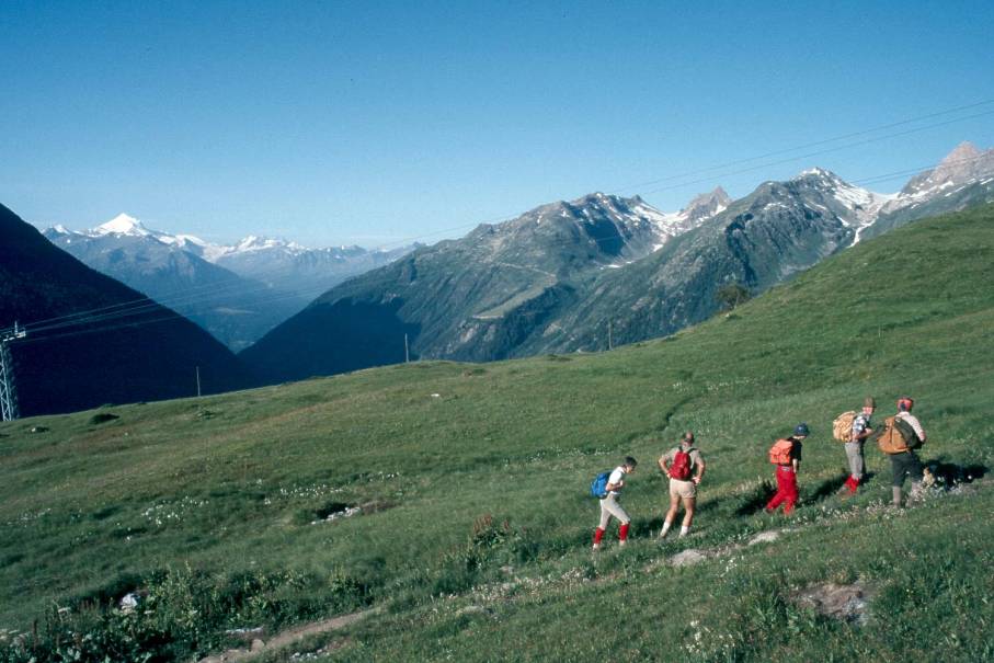 Der Lötschenpass (CH) Übergang vom Berner Oberland/Kandertal in das Wallis/Lötschen-, Rhonetal. Eine herrliche ausgedehnte Wanderung vorbei am immer lockenden Bergen, dem Balmhorn und dem herrlichen Bietschhorn. Heute: Hier Start auf der Lauchernalp über dem Lötschental.