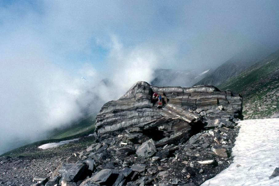 Da sitzen die Mitwanderer auch gleich auf oder in einem Stein der wohl gerade von da oben heruntergefallen ist.
