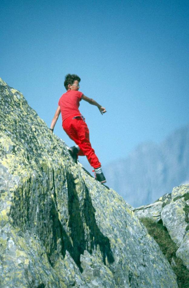 Während die “Alten” mühsam ihre Kilos nach oben tragen, suchen die Kinder noch nach schönen zusätzlichen Klettereien.