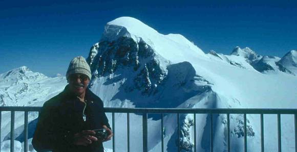 Und tatsächlich ist dieser Berner Oberländer (der liebe Samuel), der eigentlich viel reist, erst mit mir in dieses Bergparadies gekommen. Im Hintergrund das Breithorn (nicht das Lauterbrunner, sondern das Zermatter). Zweimal waren wir schon oben. Doch für all` diese Bilder wird mein WebSpace nicht reichen. Wer hat noch welchen übrig?