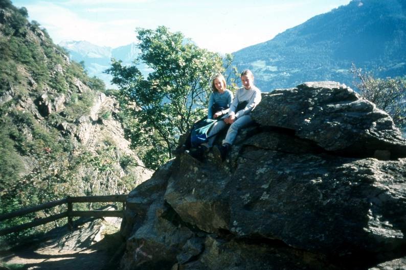 Ungeachtet der Tatsache, dass es hinter dem Stein gleich mächtig hinunter geht sind sie da hinauf.