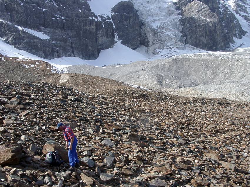 Zur Hintergrathütte über die Geröllfelder unter dem Ortlermassiv.