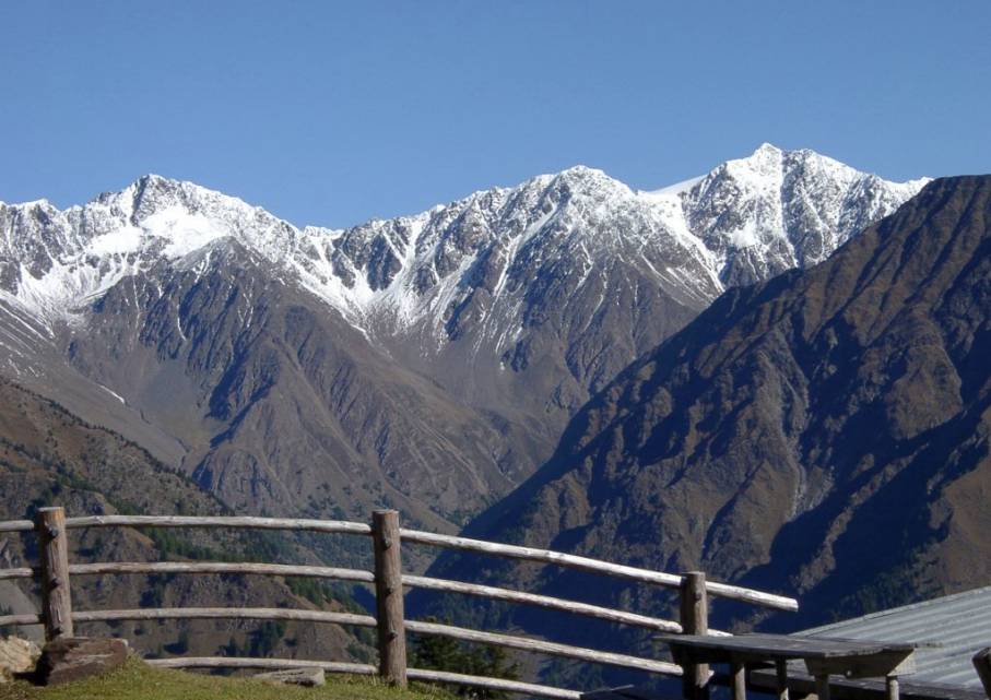 Prächtige Aussicht in die Berge gegenüber. Hier könnte man sich bald das Mittagessen servieren lassen.