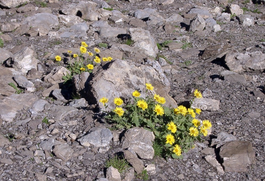 Nur Geröll und doch ist auf der Passhöhe die Gemswurz anzutreffen.