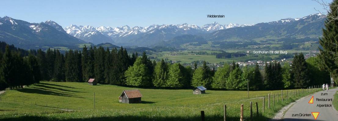 Viele Gipfel, nur einen kann ich benennen, den Widderstein. Die letzten 45 Minuten hinauf werden die Hände benötigt, also mehr etwas für Berggewohnte. Er ist am Ende des Kleinwalsertal von Baad aus zu erklimmen.