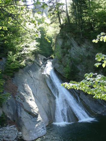 Start zum Grünten: Wasserfall vor der Starzlachklamm, Eintritt in die Klamm 1,50 Euro. Alles wird vermarktet. Der Miniparkplatz in Winklen vor der Klamm ist bereits mit einem Parkautomaten versehen. Da sollen wohl die Kosten für die vielen Parkverbotsschilder davor wieder hereingeholt werden.