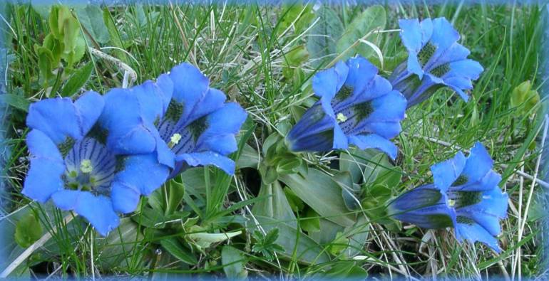 Pause auf der ersten Wiese. Genau hinschauen! Enziane, Schlüsselblumen, Soldanellen, nein, Mehlprimel und hin und wieder auch die seltenen Flühblumen in Kugelform.