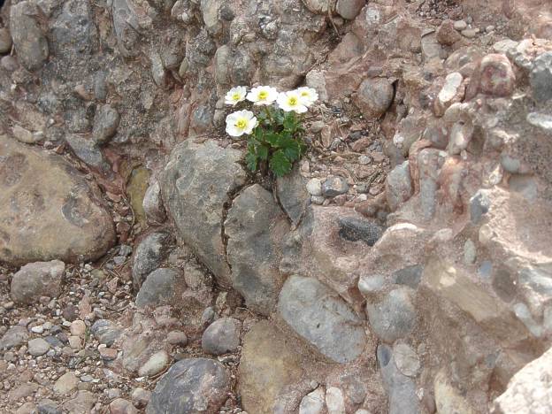 Da muss der Wanderer auch vorbei, an diesem kleinen Blumenstrauß.Das Gestein hier auch etwas außergewöhnlich: Lauter kleine zusammengepresste Steine.