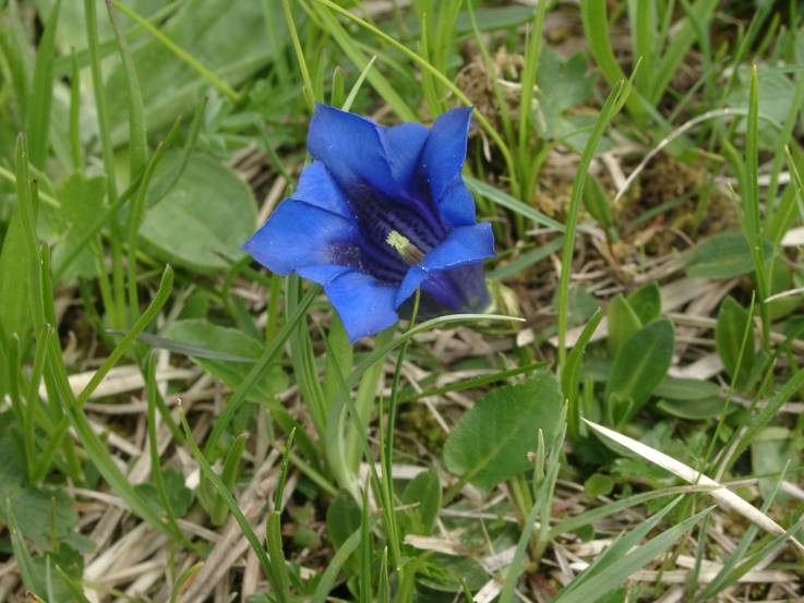 Auf den etwas höher gelegenen Wiesen sind überall die Enziane zu finden.