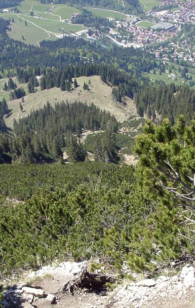 Vom Grat zwischen Geißalphorn und Rubihorn blickt der Wanderer hinunter auf Oberstdorf.