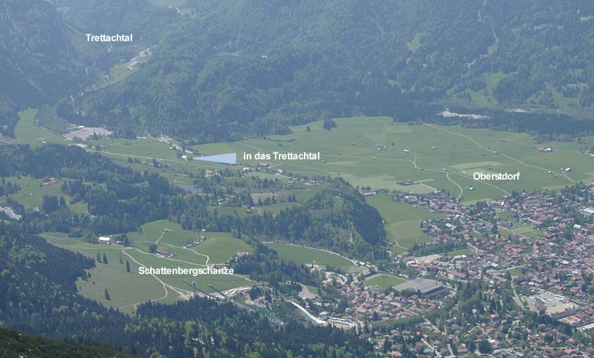 Schöne Seitentäler um Oberstdorf. Lange Seitentäler sind es, so dass der Bergsteiger oft das Rad zwecks Verkürzung des Anmarschweges brauchen kann, um einen Gipfel in einem Tagesmarsch zu erreichen.