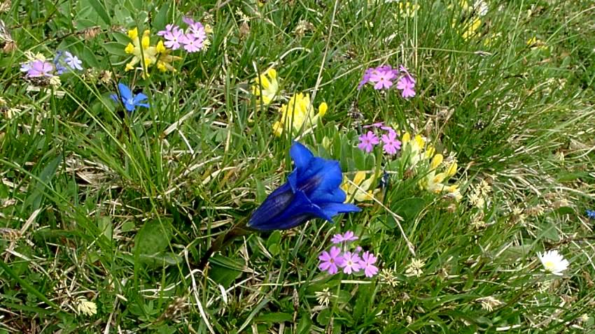 Selbstverständlich wachsen Enziane nicht allein auf der Bergwiese.