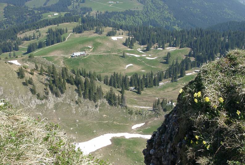 Über die Flühblumen lässt sich prächtig hinunterschauen. Felsenaurikel!