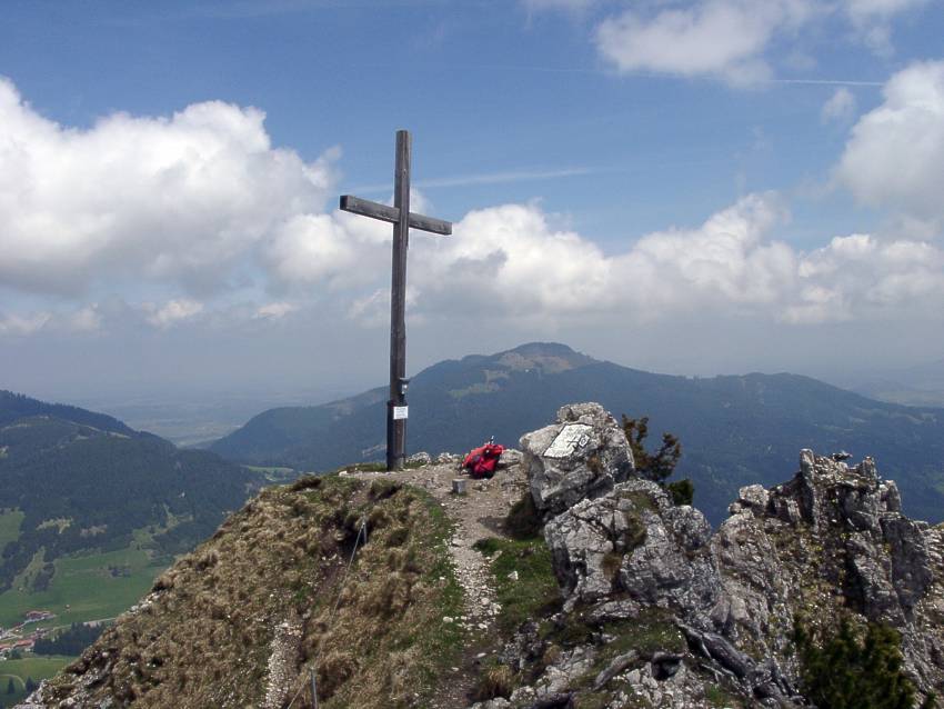 Sorgschrofen 1636mAus dem Schild am Gipfelkreuz steht “Überqueren zum Zinken nur für Geübte”. Doch wer es bis hier geschafft hat, in einer steilen Rinne ging es hinauf, gehört zu den Geübten.