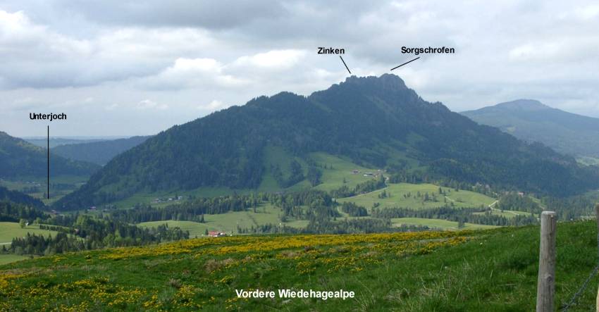 Unterjoch - Sorgschrofen 1.45 (hinter dem Berg entlang)Unterjoch - Zinken 1.30 (vorn herum)Sorgschrofen - Zinken 30 Minuten (nur für Geübte)