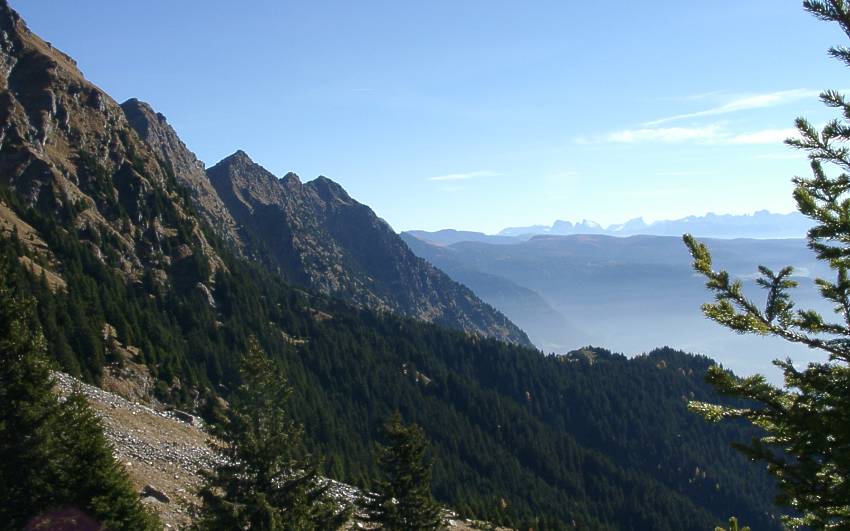Auf dem HochgangpfadPrächtige Sicht zur Mutspitze, im Hintergrund die Dolomiten.
