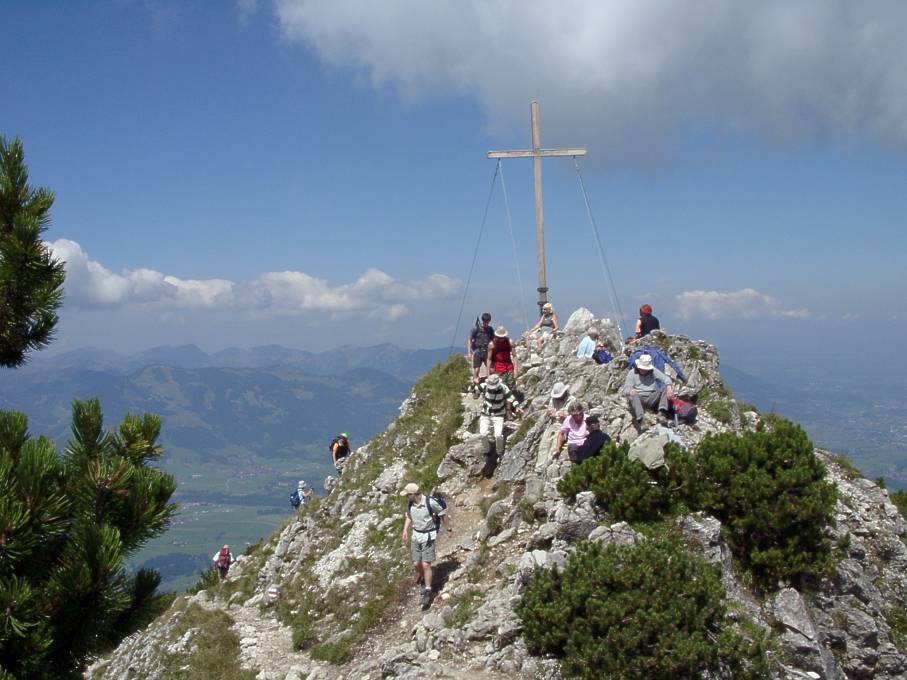 Mit der Nebelhornbahn zur ersten Station Seealpe (hat nichts mit Gebirgsmarine zu tun). 2 1/2 Stunden zum Gipfel. Hinunterschauen muß man schon können! Der Abstieg über die Geißalpe. Eine Stunde zum Geißalpsee, eine Stunde zur Geißalpe, eine Stunde zum Parkplatz Nebelhornbahn.