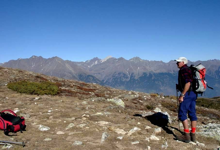 Die Gipfel gegenüber fast zum Anfassen. Der Herr hier rechts kennt sie alle. Er kennt sie nicht nur alle, er war auf fast allen!