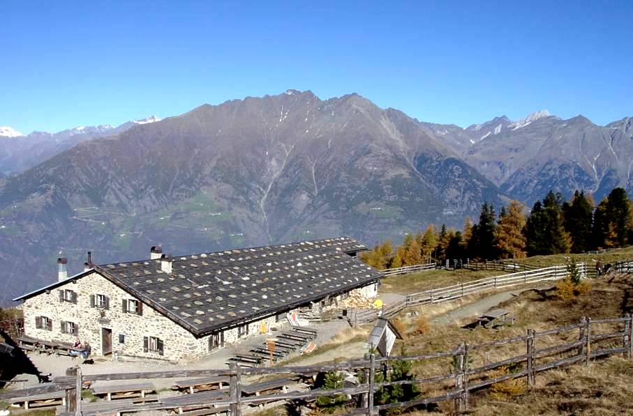 Naturnseralm. Nach einer Stunde Anmarsch schmeckt da schon der Capuccino. Die Sonne ist so warm, dass wir eigentlich vor der Hütte auf das Mittagessen warten sollten.