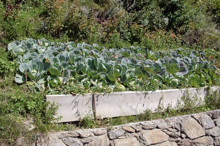 Selbst oben am Berg wächst prächtiges Weißkohl.