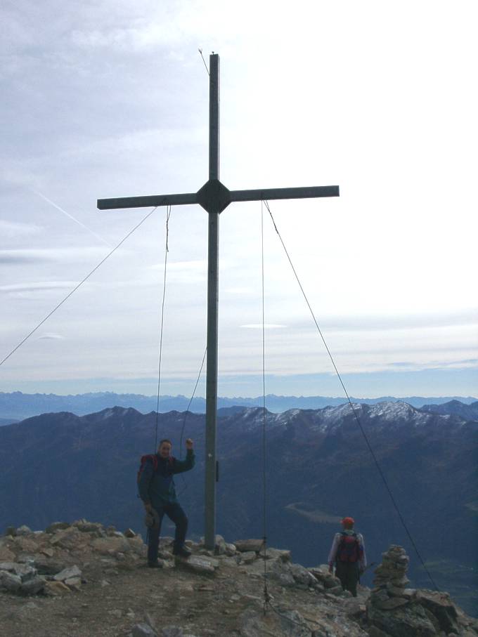 Bei bestem Bergwetter ein schlechtes Gipfelfoto. Gegen die Sonne!