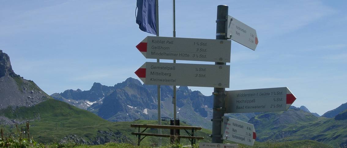 Mittelberg 3 Stunden, nach Baad noch ein wenig mehr, wenn der Wanderer den Weg über Mittelberg wählt. Der Weg hinunter ist schier endlos. |
