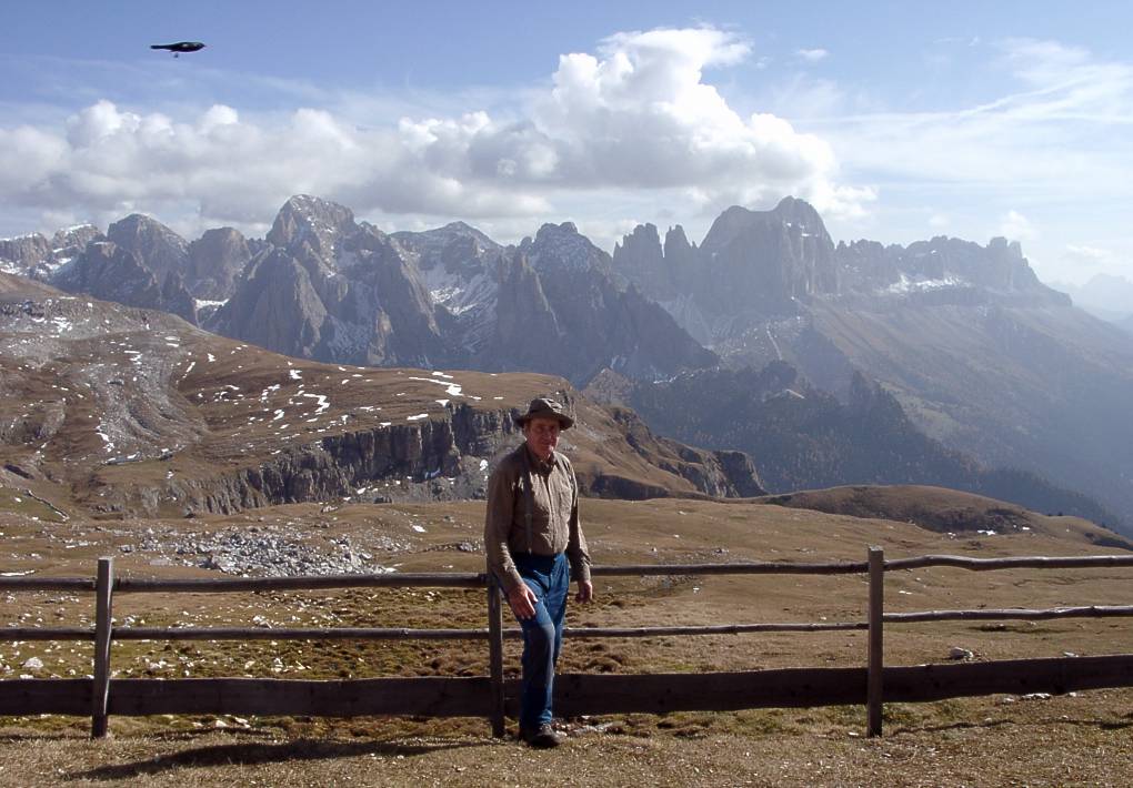 Prächtige Aussicht in die Dolomiten haben die Wanderer heute. Der oben links macht das alles im Pfeilflug.