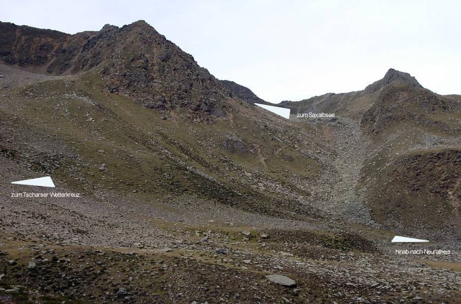 Vom Saxalpsee zum Tscharser Wetterkreuz nur eine Stunde. Doch in dieser Steinwüste sind die Wanderer dann “vom rechten Weg” abgekommen.