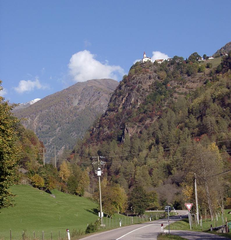 Ein schöner Spaziergang von Kurzras Richtung Bildstöckljoch bietet sich an, da der Weg zuerst nur leicht ansteigt. Zuvor fährt der Wanderer hier unter der Kirche von Katharinaberg entlang. |