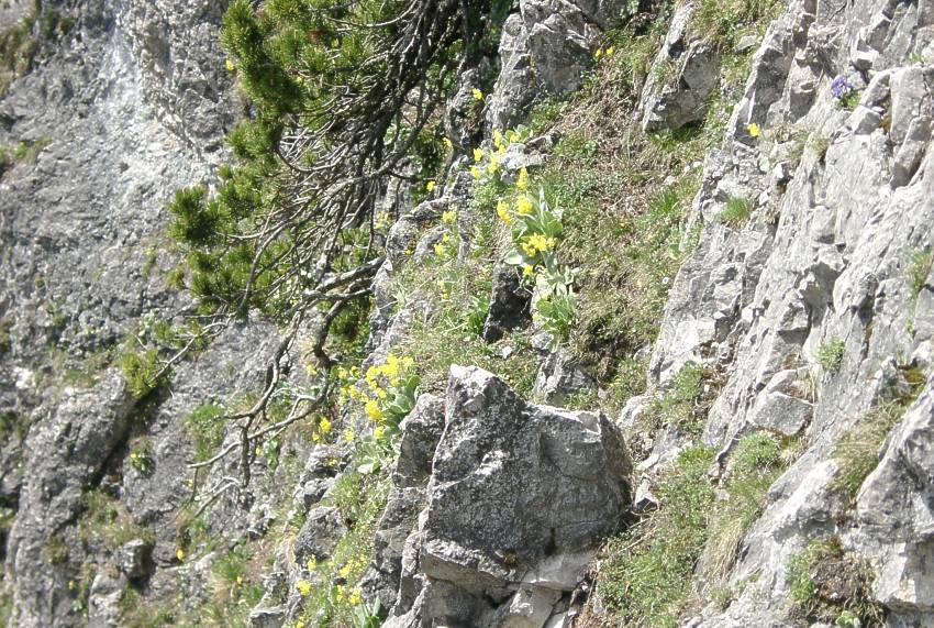 Aurikel (Bergbadenser, Wildbartengel, Flühblumen) zieren den ganzen Grat.