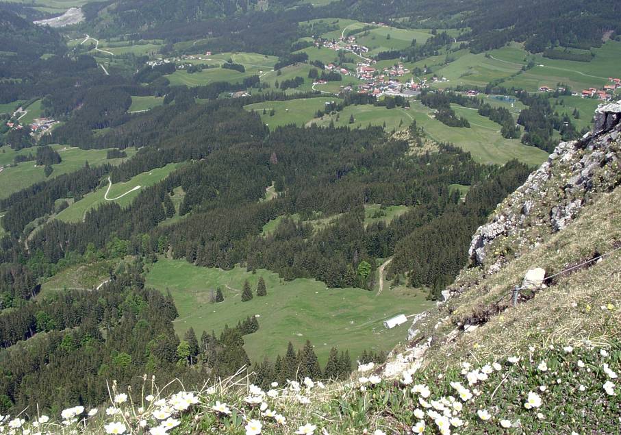 Da blickt der Wanderer hinunter nach Jungholz und senkrecht hinunter zur Alpe Älpele.