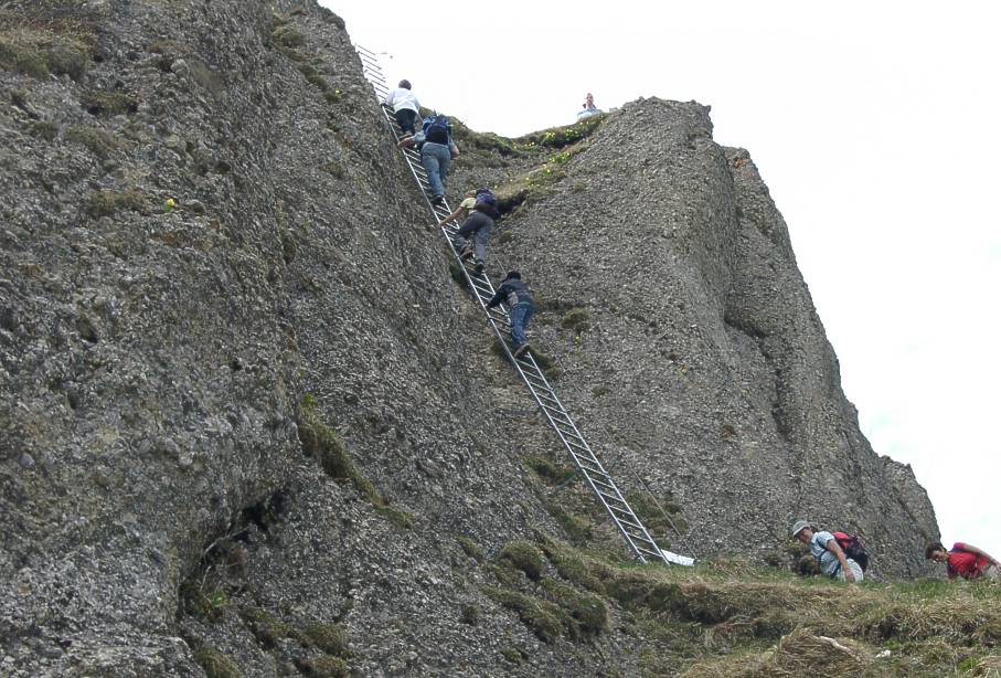 Die Leiter zum “Angstberggipfel”. Wenn sie so wäre, ginge es ja noch.
