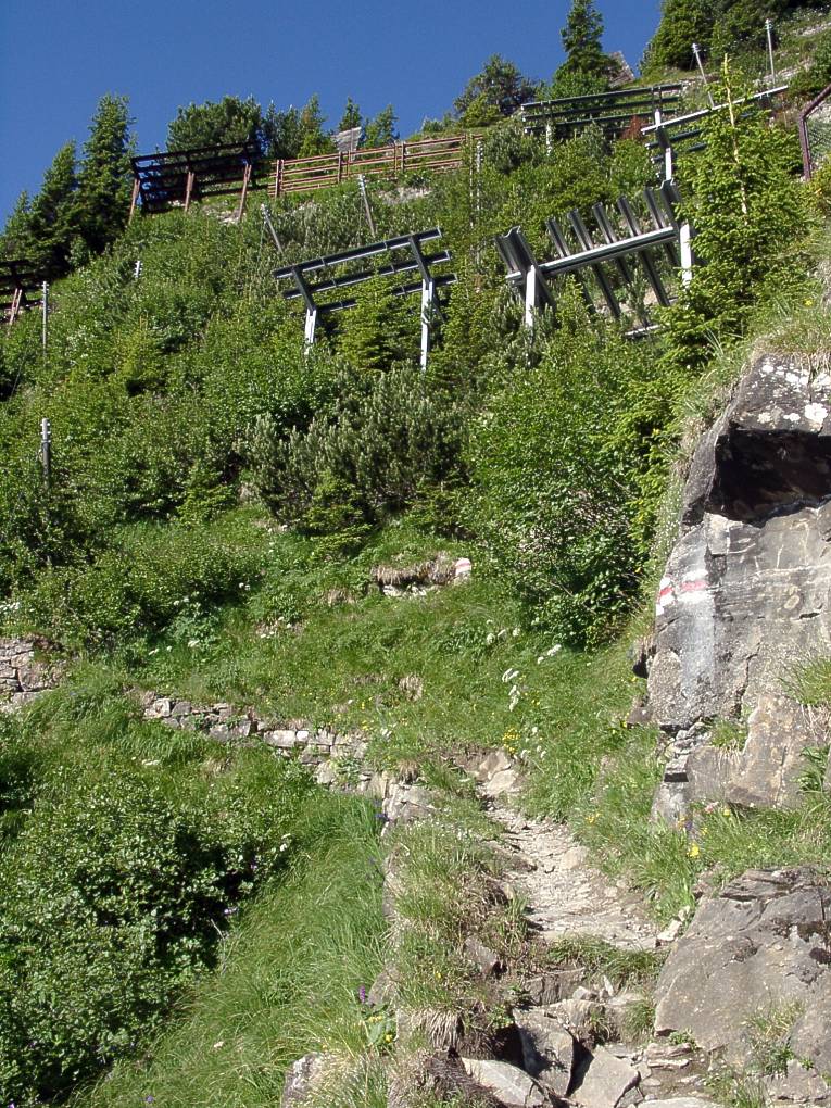 Eine ganze Weile geht es auf schönem Pfad durch die Lawinenverbauungen hinauf.