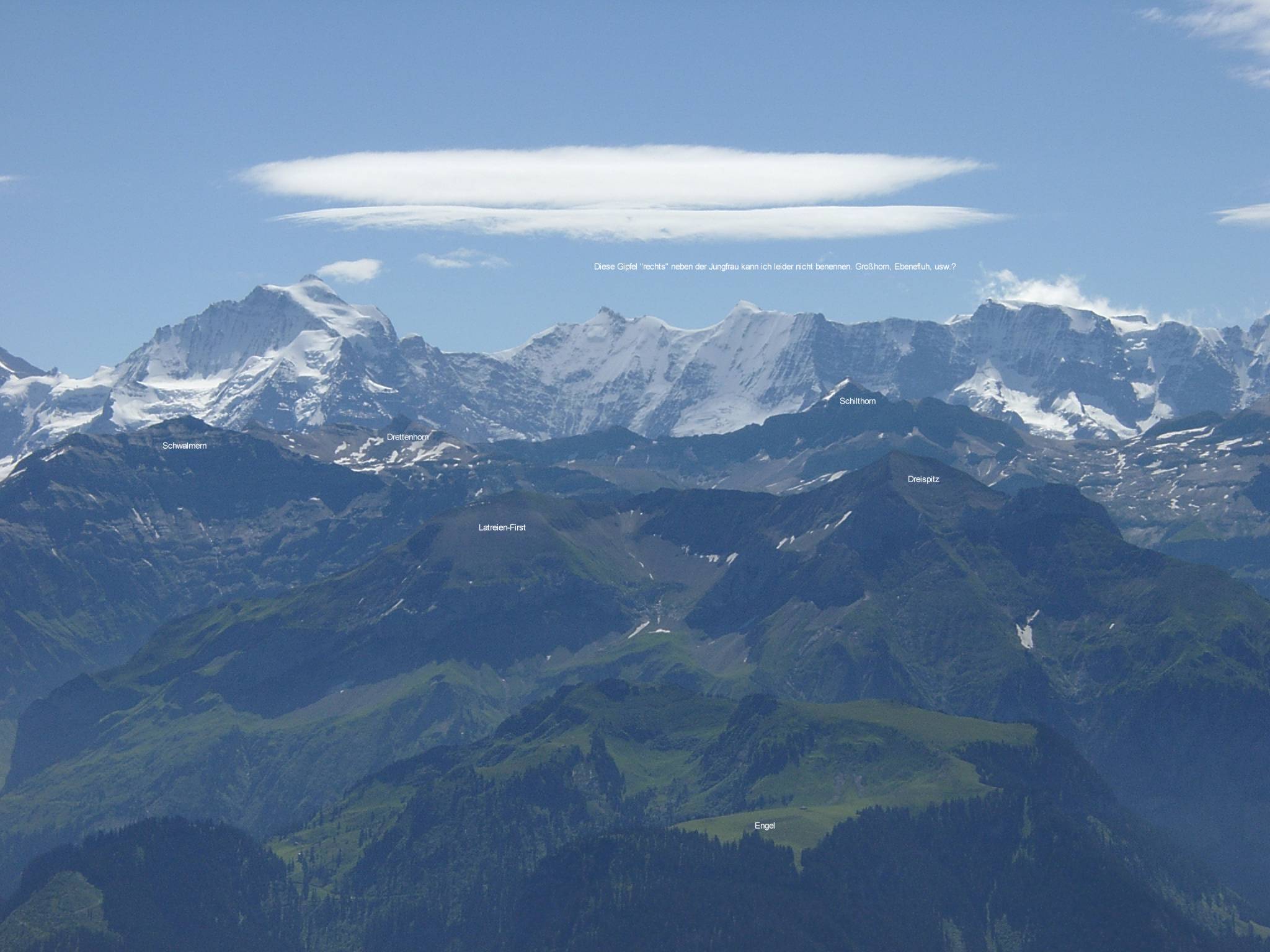 Zu den Gipfeln rechts neben der Jungfrau habe ich mir “GEM” gemerkt: Großhorn, Ebnefluh, Mittaghorn. Doch dann kommen noch zwei markante.