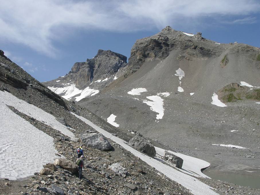 Auf dem Weg zur Roten Kumme: Rechts das Täliseeli, das Tierhörnli und das Steghorn.