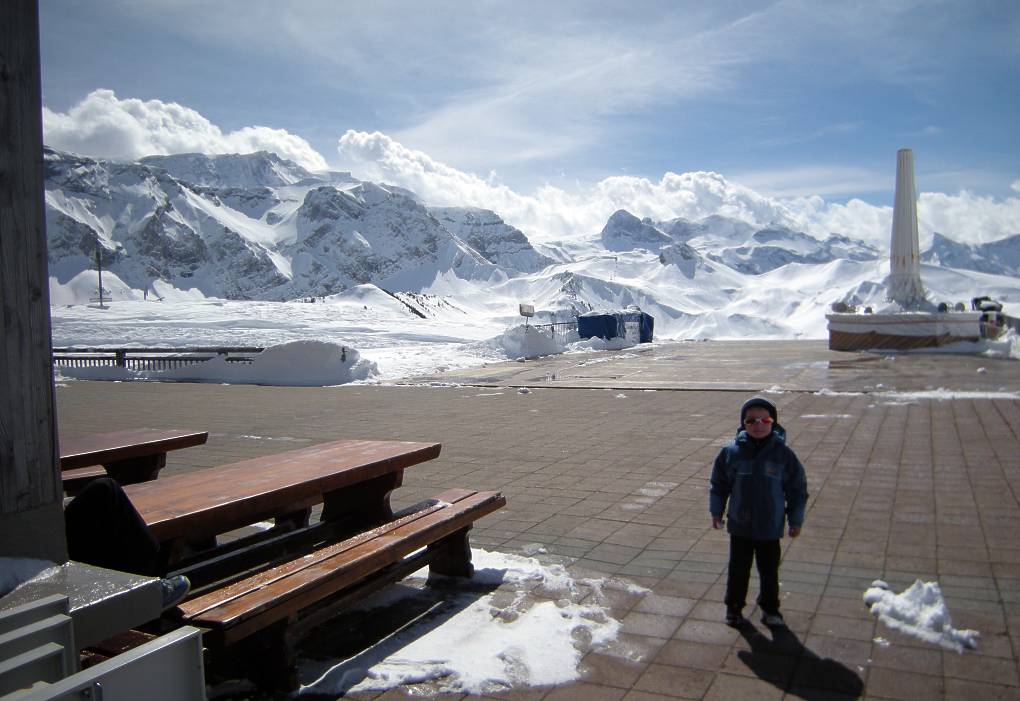 Die Wolken hinter mir zeigen, dass der Föhn kräftig arbeitet. Der Laveylift war wegen Wind schon abgestellt.