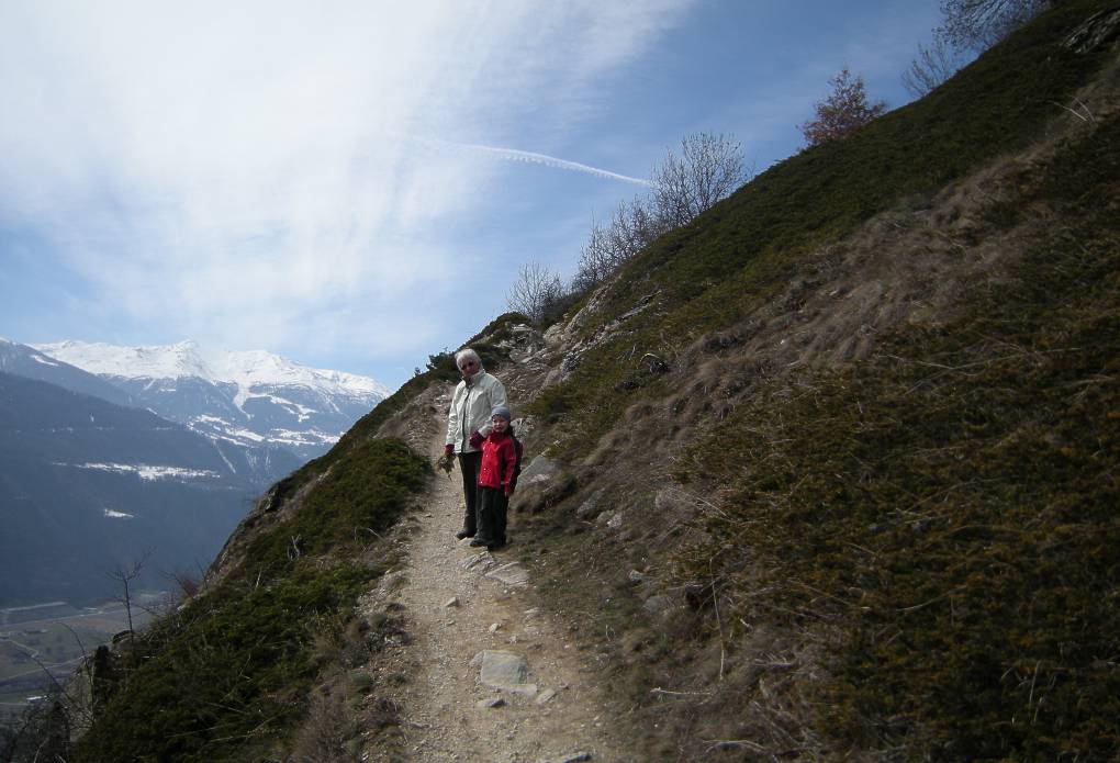 Eine Viertelstunde Abstieg auf arg steinigem Pfad.Wanderer beachte: Ausserberg - Eggerberg mindestens drei Wege möglich. Der obere Ende März wegen Lawinengefahr nicht empfehlenswert!