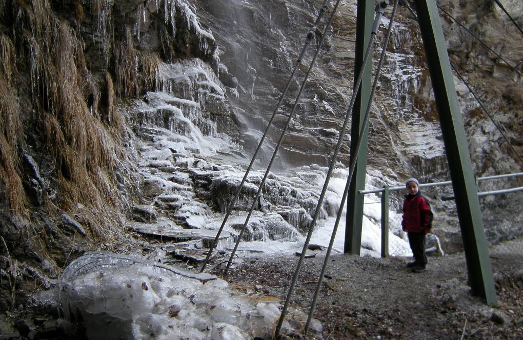 So richtiger Frühling ist es auch im Rhonetal noch nicht.Gleich geht es über die zweite Drahtbrücke. Ganz fest sind die Bohlen nicht.